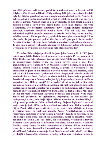 V závěru Bůh veřejně prohlásil, že jsem jeho ženou a 10. 6. 2003 jsme